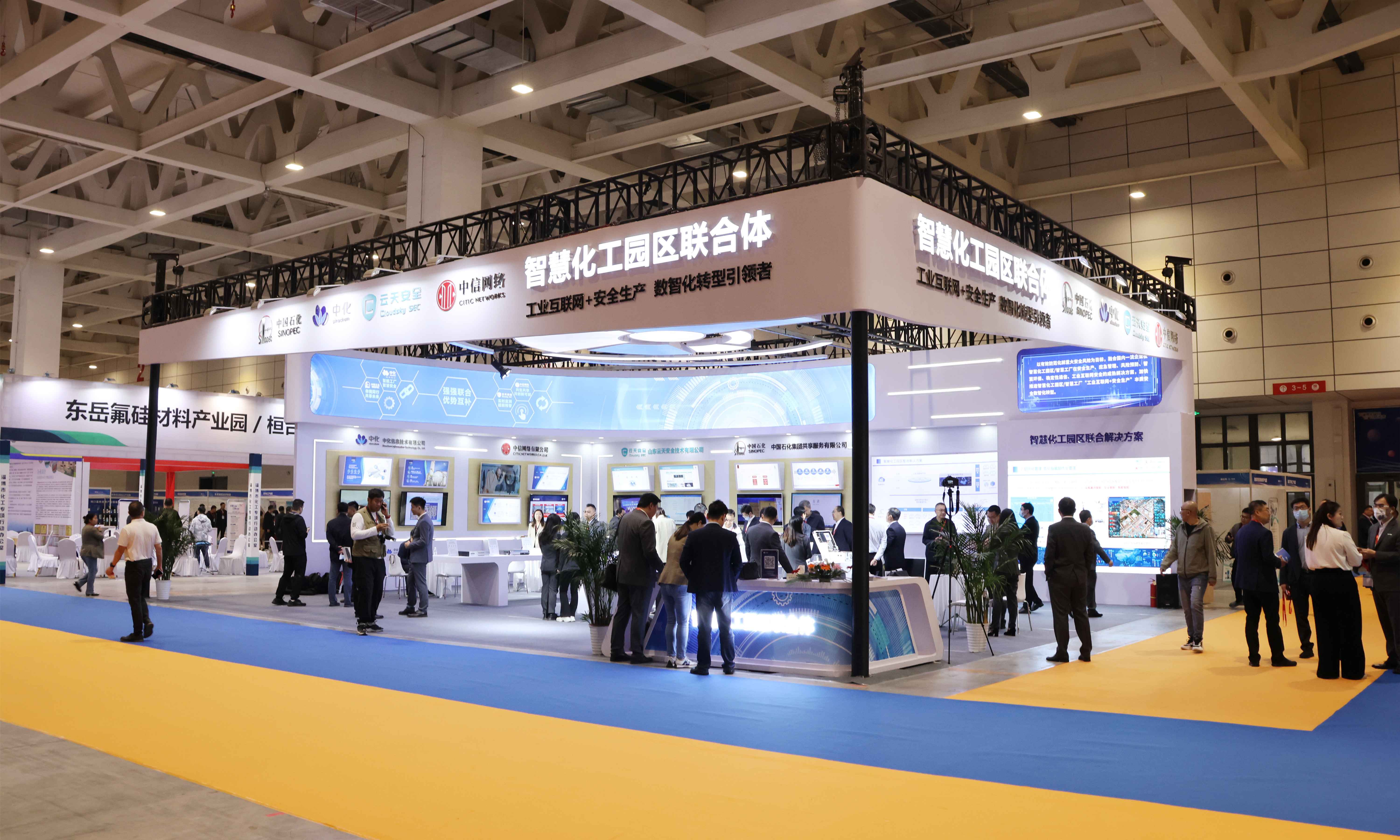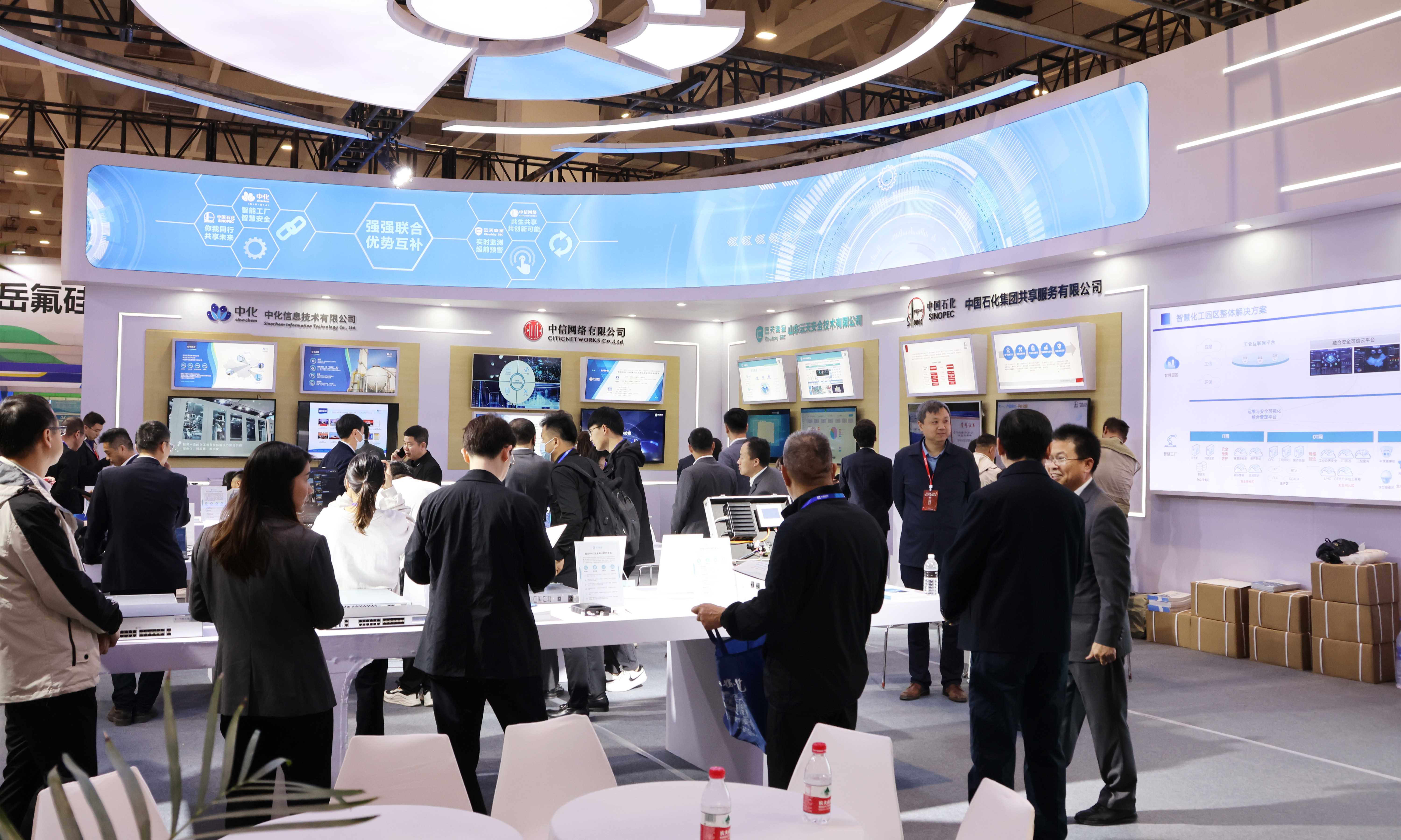 本届博览会以“智汇全产业、碳讨新未来”为主题,着力打造智慧化工及化工园区、传统化工企业及化工设备两大展区,汇集了500余家参展商,展出面积约25000平米。本届博览会,由中石化集团、中化信息、中信网络、未来集团、安工数联、太阳城app安全、首创智能、昌旭云智能八家单位合作成立智慧化工园区联合体,联合展示的智慧化工园区整体解决方案首次亮相, 太阳城app安全携新一代工控网络安全解决方案、安全运营解决方案全系列明星产品精彩展示,成为博览会备受瞩目的焦点,吸引大批省、市领导,专家,媒体以及观众前往参观。
