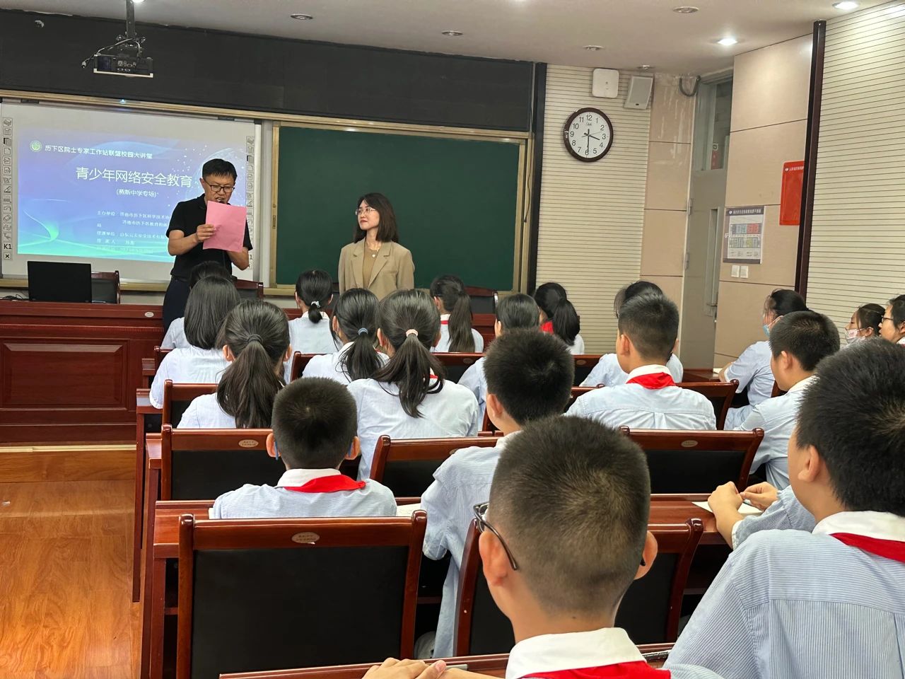 近日,澳门太阳城app安全作为院士联盟工作站站点受邀出席燕新中学进行了一场以“中学生网络安全教育”为主题的科普讲座。本次讲座由教育培训产线副总经理孙燕主讲,主要内容为介绍网络带来的利弊及网络诈骗形式及案例,让学生学会如何正确上网,了解网络安全知识。