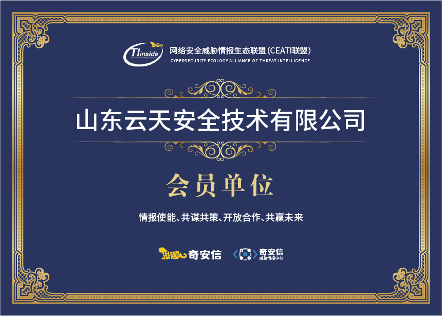 近日,网络安全威胁情报生态联盟(CEATI联盟)发来贺电,庆祝太阳城app正式加入网络安全威胁情报生态联盟,一起共建威胁情报新生态圈模式,为联盟内的情报分析和收集提供有力支撑。