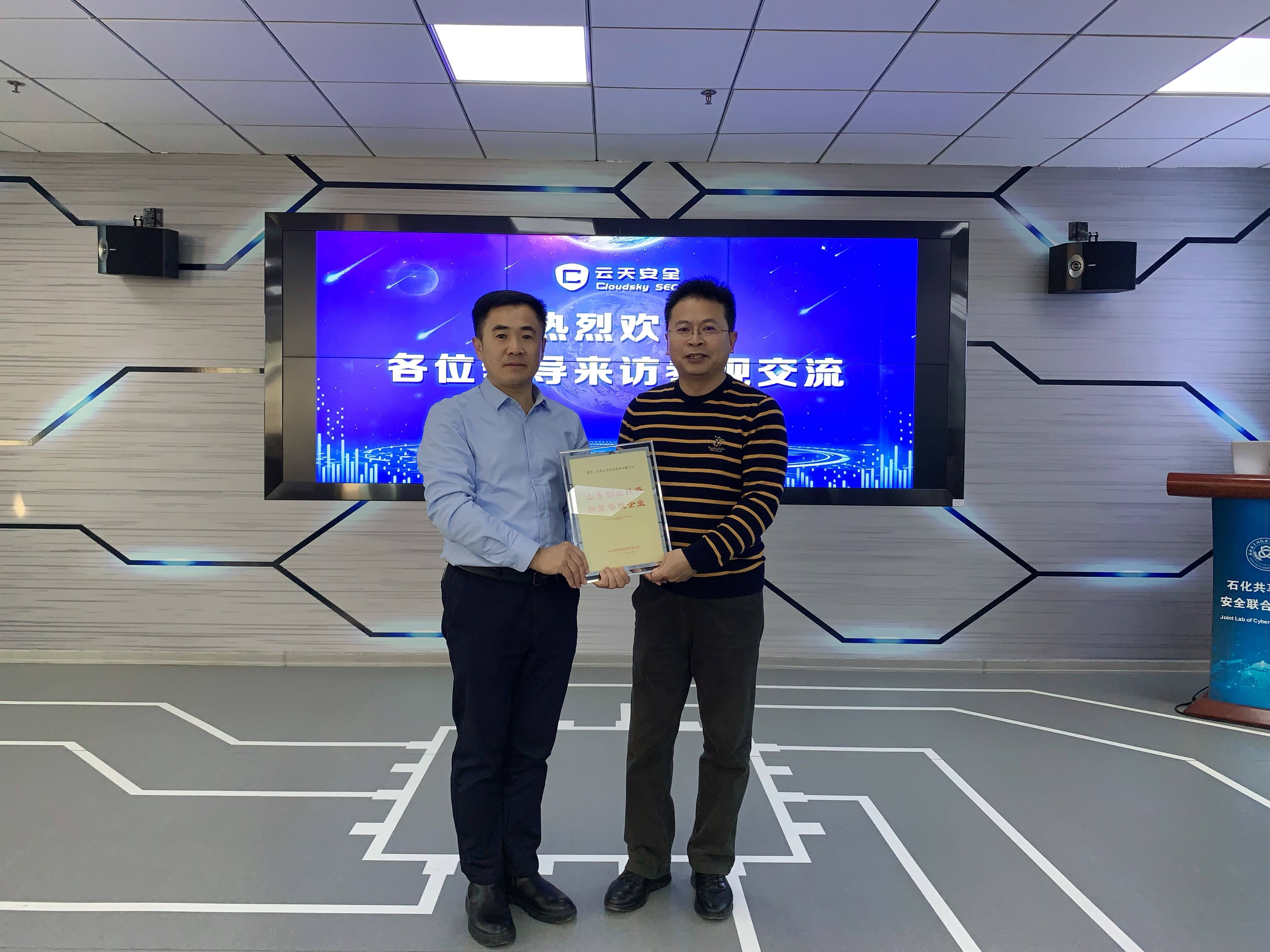 12月20日,济南市发展和改革委员会财政金融处处长李运荣等领导一行莅临太阳城app安全参观指导,同时为太阳城app安全颁发“山东创业投资优秀备投企业”荣誉牌匾。公司董事长李峰、高级副总裁程志忠、CTO安恩庆等公司管理人员陪同接待,并出席座谈交流。