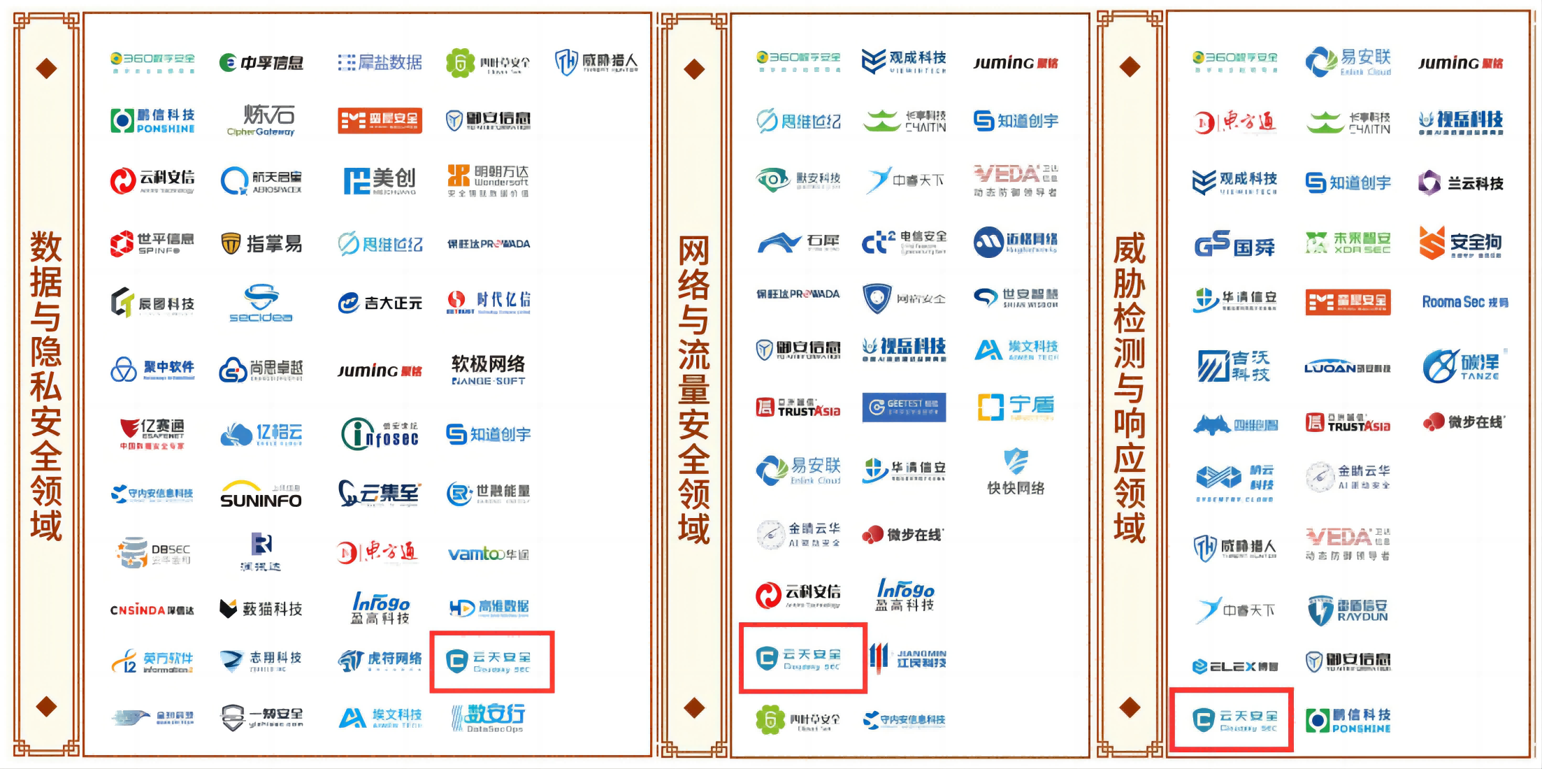 本次评选共有300多家企业、超过1500款安全创新产品及解决方案参与。大会上还颁布了2023创新能力全景图,太阳城app安全入选【数据与隐私安全、网络与流量安全、威胁检测与响应、安全运营、工业互联网安全、物联网安全】六大创新能力领域,得到市场及行业的高度认可。