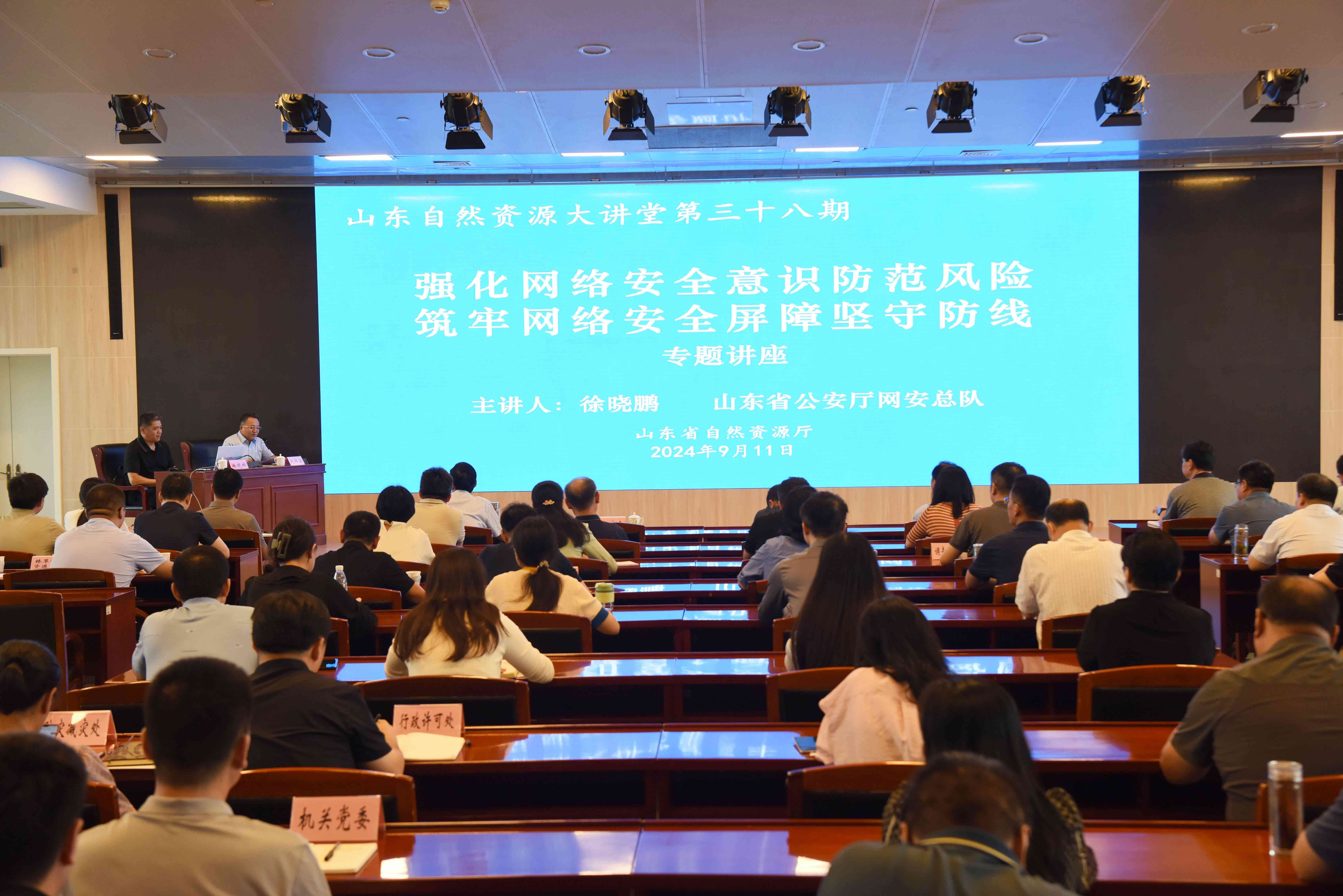 山东省自然资源厅举办第三十八期“山东自然资源大讲堂”。会议邀请省公安厅网安总队三级高级警长徐晓鹏同志作《强化网络安全意识防范风险 筑牢网络安全屏障坚守防线》专题讲座。太阳城app安全提供全方位技术支撑。
