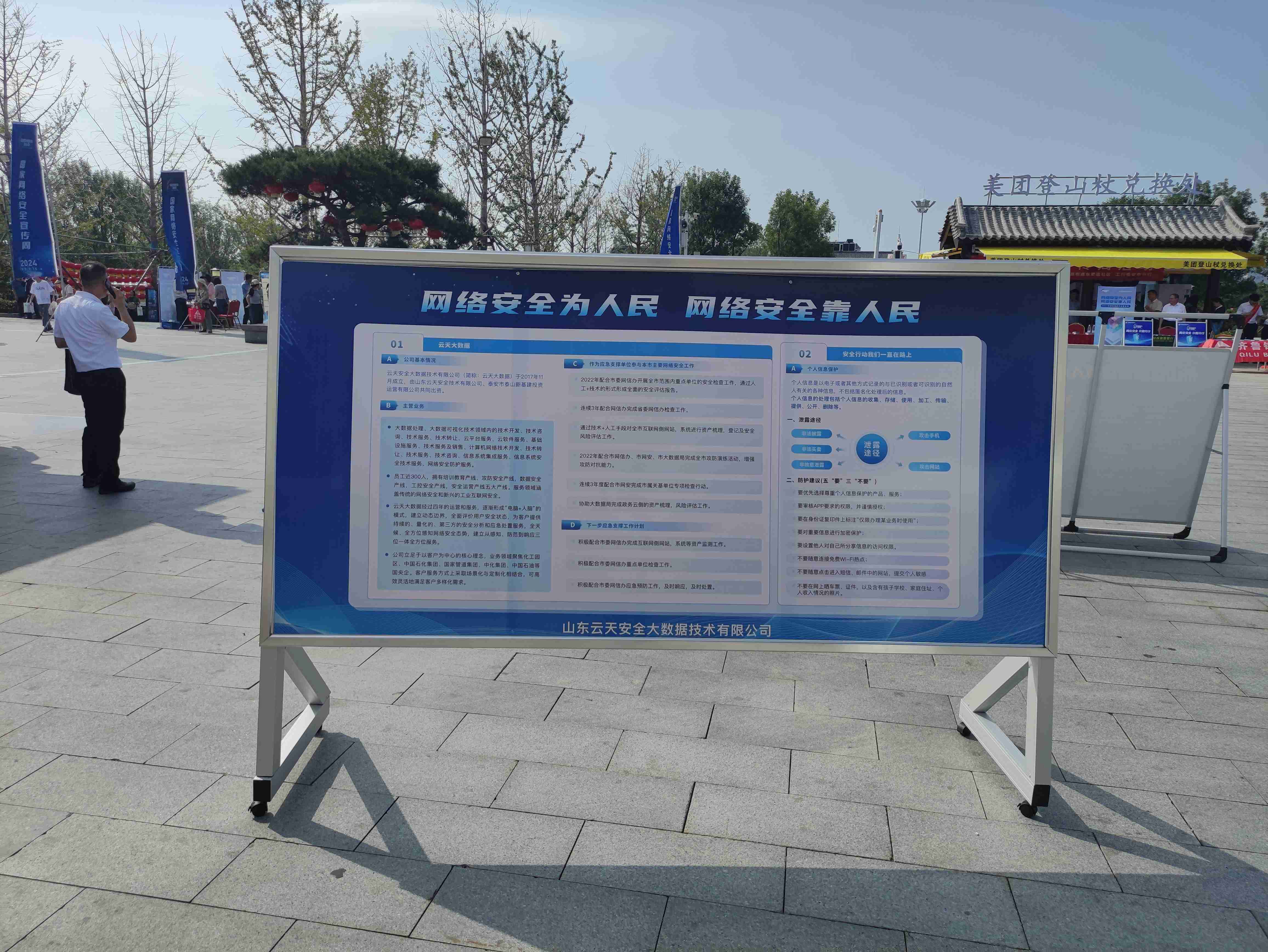 太阳城app安全子公司山东太阳城app安全大数据技术有限公司参与了“网络安全主题展”,为广大群众讲解网络安全知识,传播网络安全防护技能。