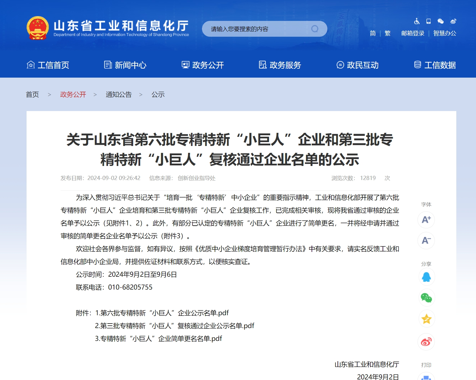 国家级专精特新“小巨人”企业,是全国中小企业评定工作中最高等级、最具权威的荣誉称号,获得专精特新“小巨人”企业是中小企业中的佼佼者、排头兵,是瞄准市场空白、行业痛点进行钻研和深耕业务的中小企业,专注于细分市场、创新能力强、市场占有率高、掌握关键核心技术、质量效益优的科技型企业。需要同时满足专业化、精细化、特色化、新颖化以及产业链配套等多个方面的严格要求。