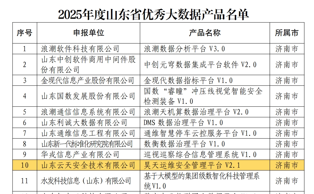 此次入选山东省大数据产业“三优两重”双榜单,不仅是对澳门太阳城app安全产品创新性与技术先进性的高度认可,也是对其推动大数据安全应用、赋能实体经济数字化转型所做贡献的肯定。