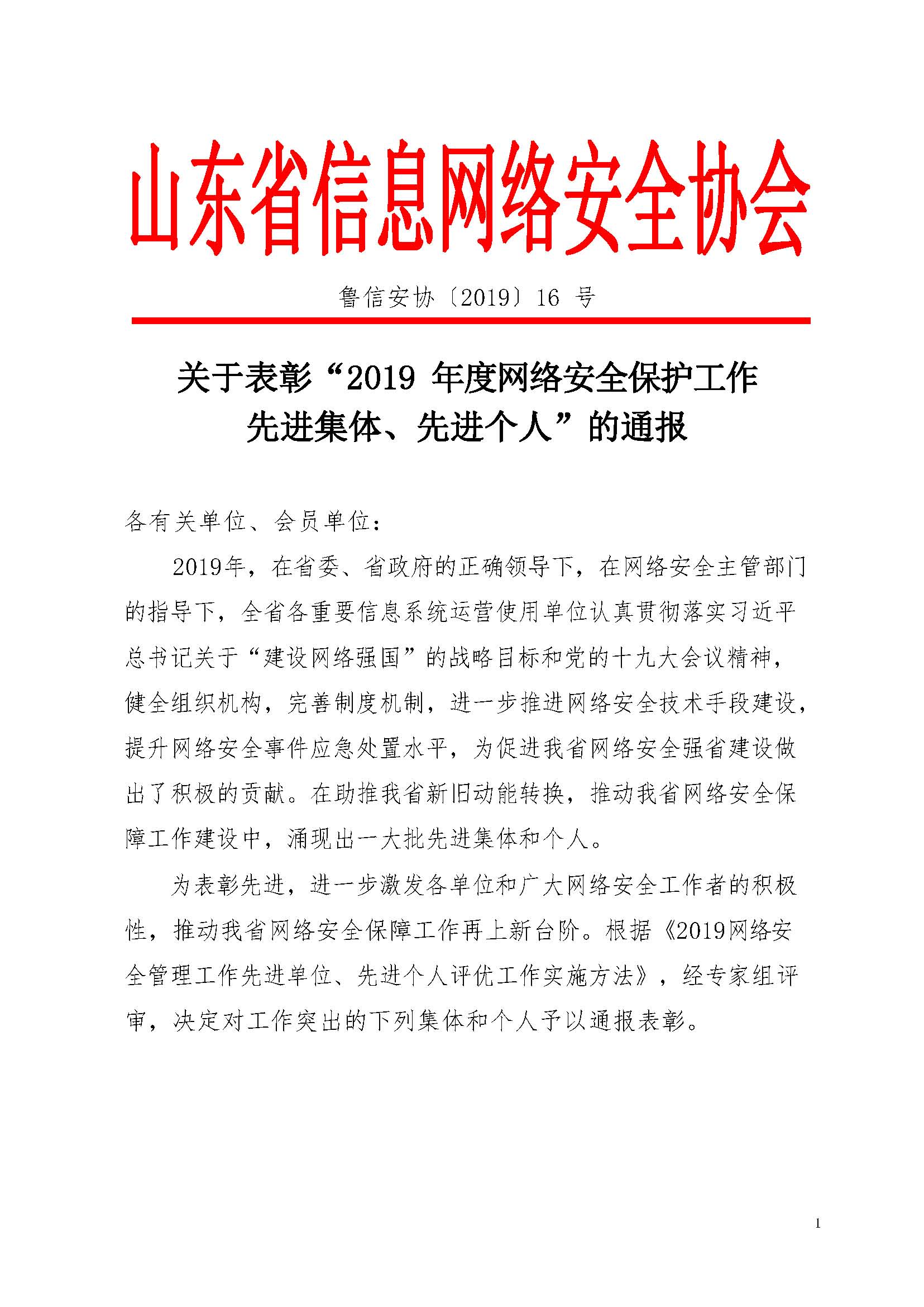 近日,由山东省信息网络安全协会下发的《关于表彰“2019 年度网络安全保护工作先进集体、先进个人”的通报》(鲁信安协〔2019〕16 号)文件中,太阳城app荣获“先进集体”荣誉称号,澳门太阳城app安全技术管理部李艳虎荣获“先进个人”荣誉称号。