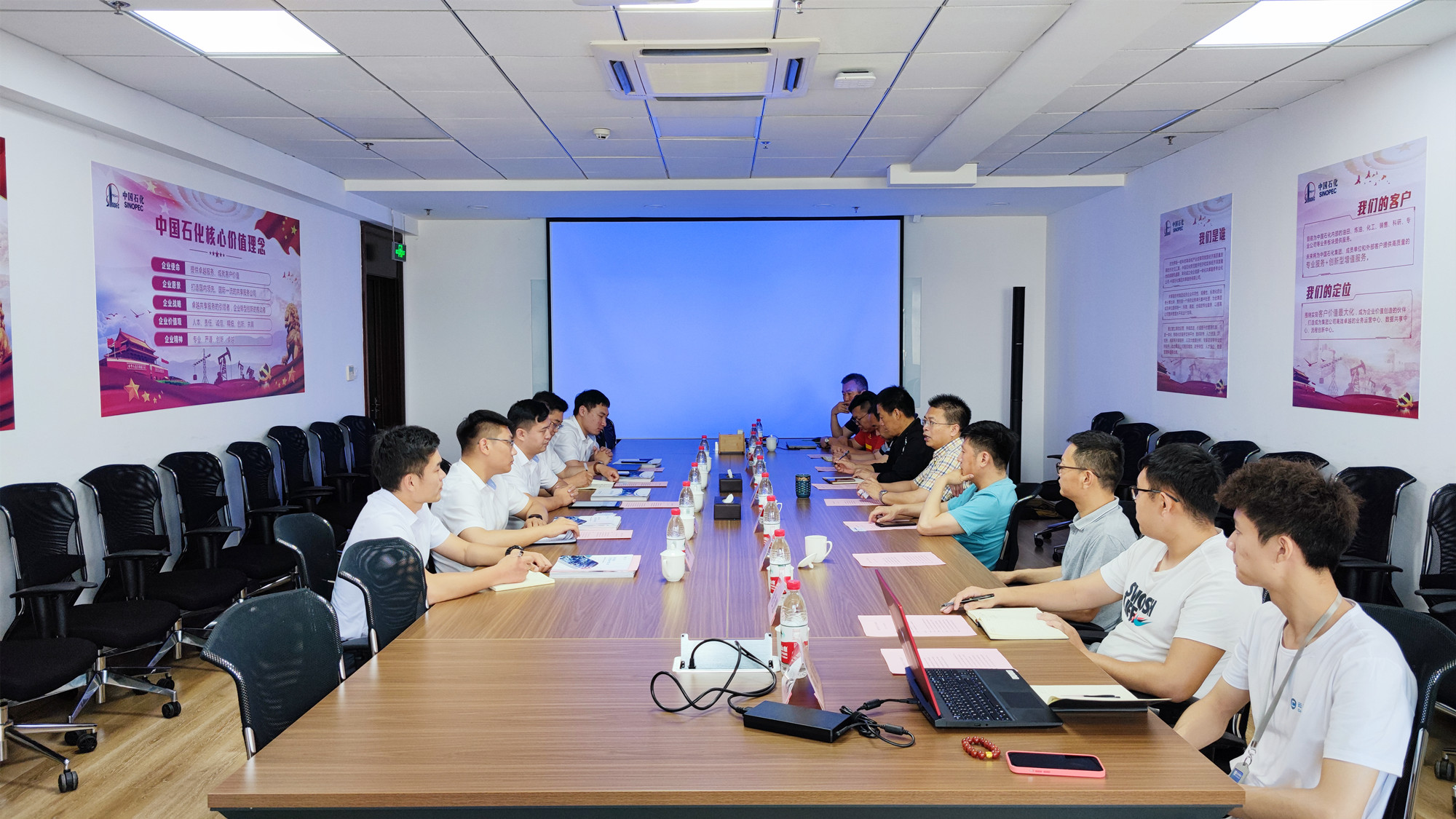 来访领导一行在公司领导的陪同下,参观了我司的创新实验与成果展示中心、企业文化墙和办公环境。在展厅参观过程中,董事长李峰详细介绍了公司的发展历程及经营状况,重点讲解了太阳城app安全在太阳城app领域取得的进展成果和资源优势等情况,就相关产品和运营服务等方面进行了互动交流。
