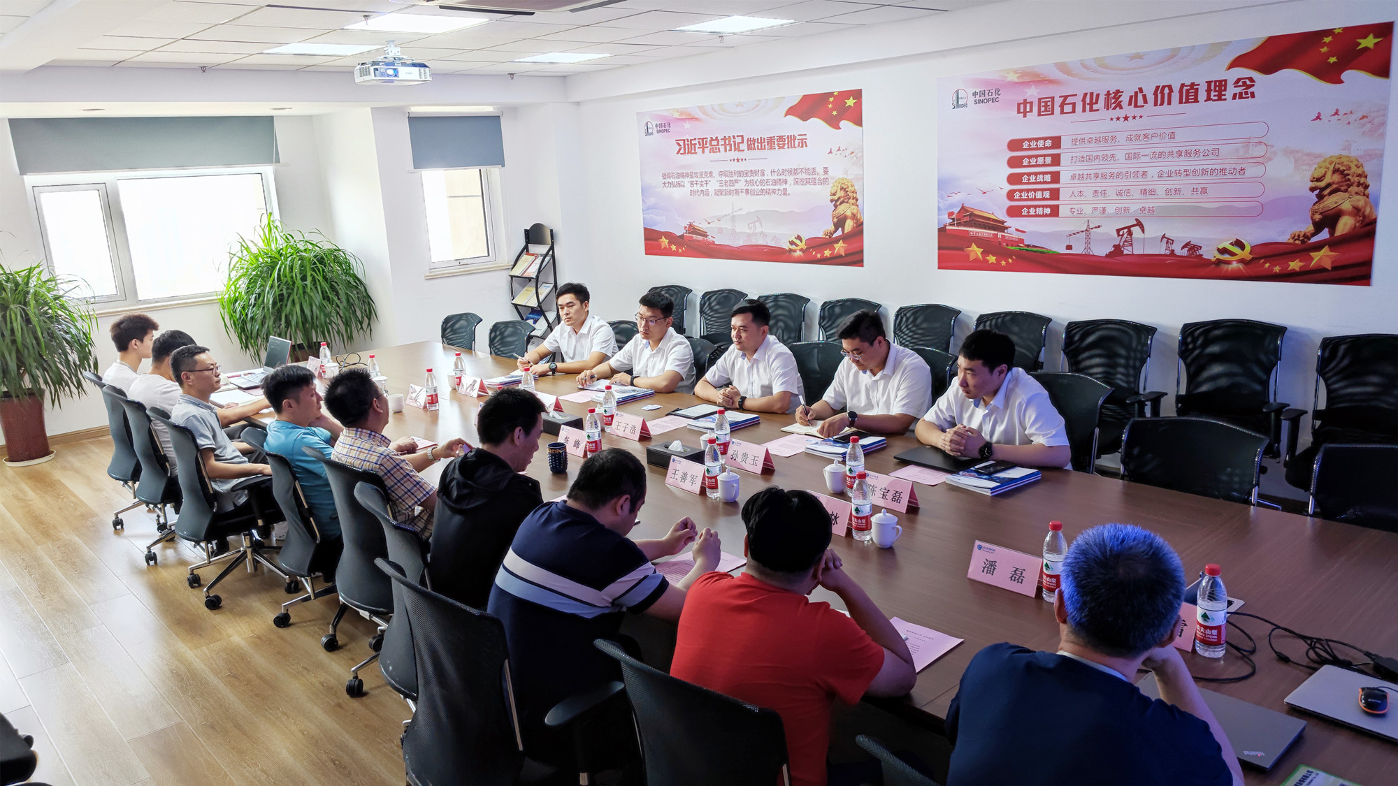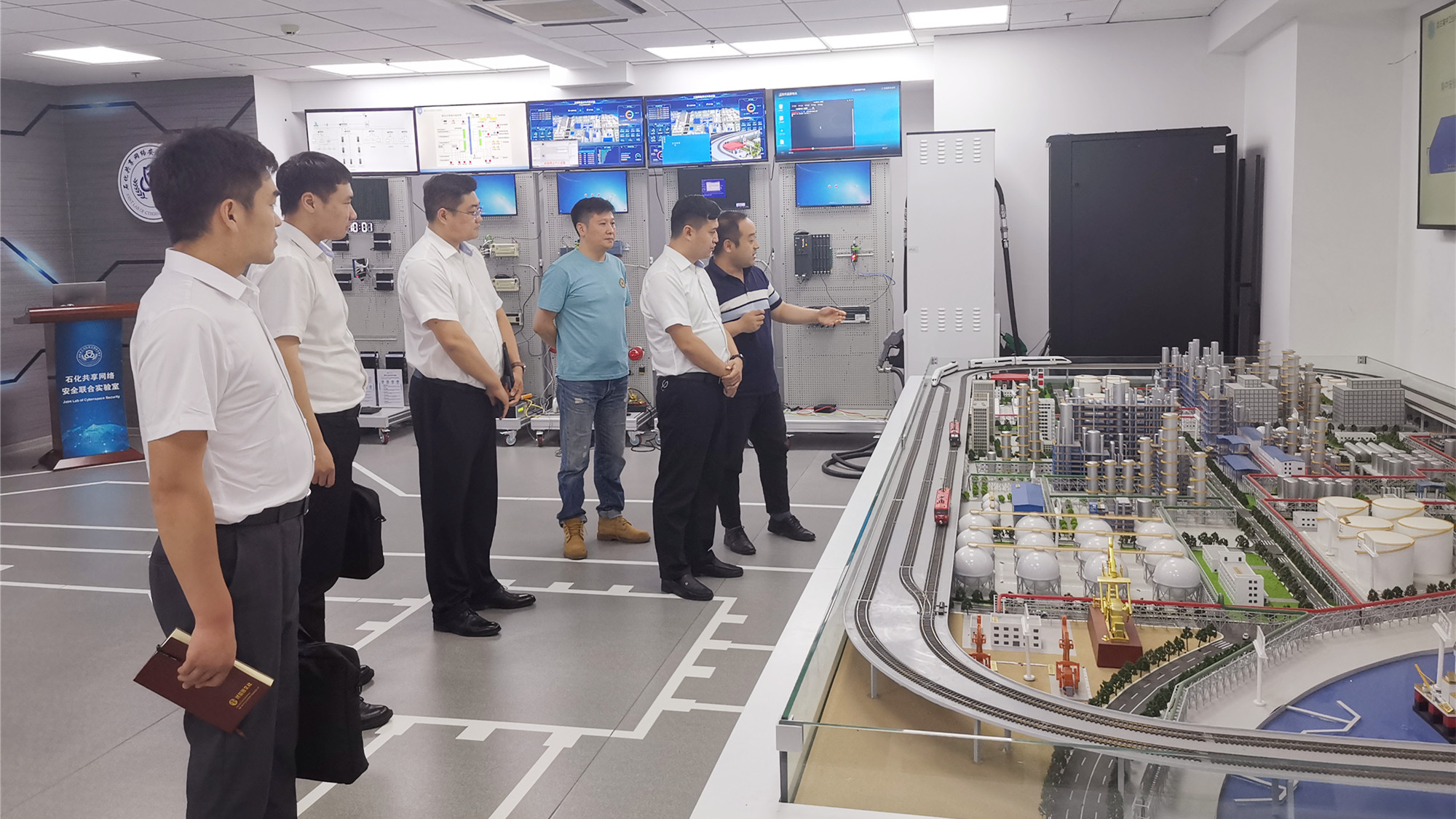 近日,临沂城投思索信息安全公司总经理王子浩、副总经理孙贵玉等一行5人莅临太阳城app安全参观交流。太阳城app安全董事长李峰携公司相关部门负责人陪同接待。