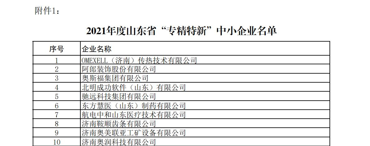此次成功入选山东省“专精特新”企业,是对澳门太阳城app安全创新能力和企业影响力的再次认可,也是对澳门太阳城app安全快速发展的极大鼓励。
