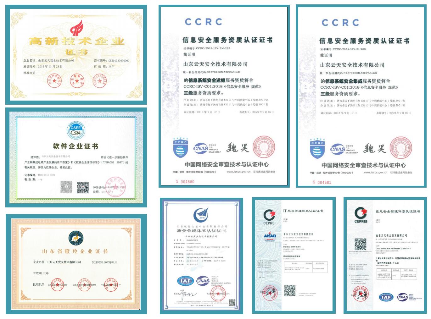 公司非常重视研发管理及技术服务,已取得ISO9001质量管理体系认证、ISO20000 IT服务管理体系认证、ISO27001信息安全管理体系认证,以及CCRC信息系统安全集成、安全运维、风险评估服务资质认证。