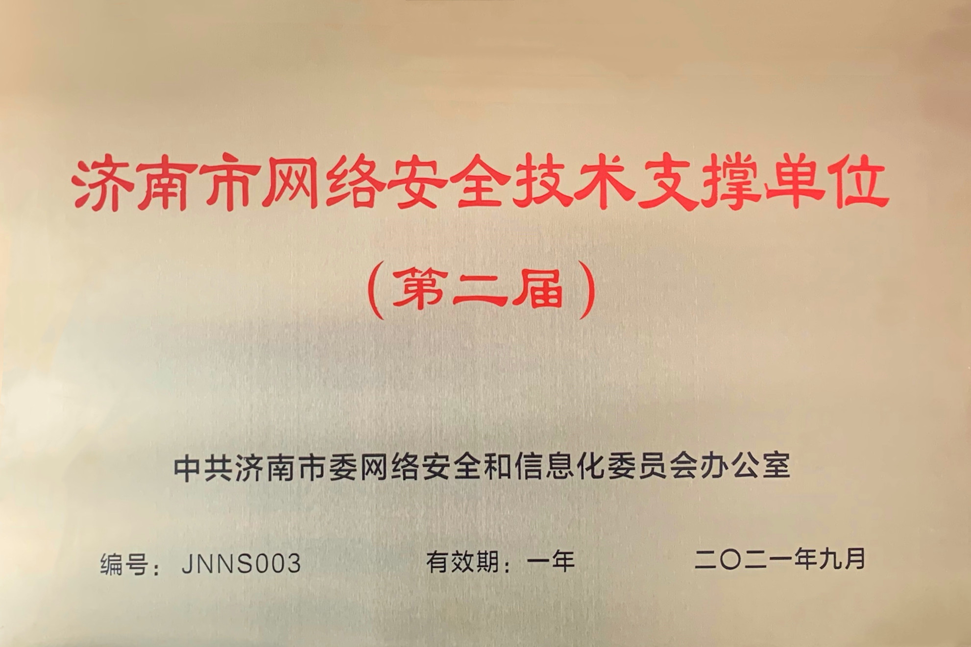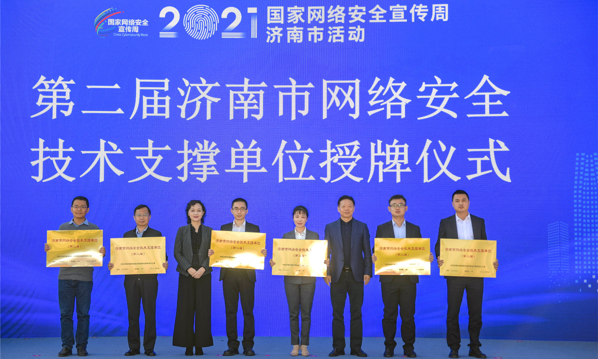 此次网络安全宣传周活动现场,为济南市网络安全技术支撑单位、济南市网络安全应急技术专家、网络安全大赛等进行了证书颁发和授牌,太阳城app安全凭借过去一年中在应急服务方面积极践行,以及提供的有力支撑,被济南市委网信办再次授予“济南市网络安全技术支撑单位”称号,公司多位技术专家被授予“济南市网络安全应急技术专家”称号。这是继2020年第一届开始连续两年获得此荣誉。