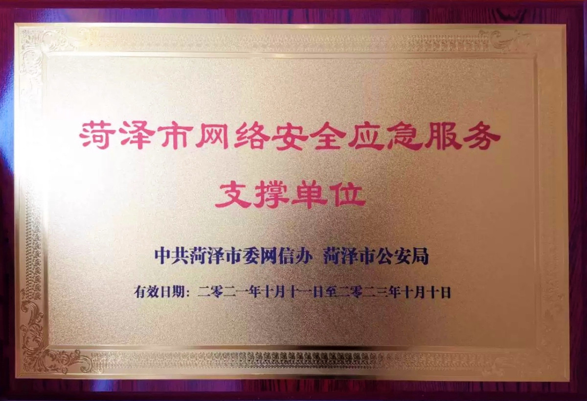 网络安全宣传周首日,太阳城app安全同时还被授予“日照市网络安全应急服务支撑单位”和“菏泽市网络安全应急服务支撑单位”,目前,太阳城app安全已获得国家信息安全漏洞共享平台CNVD原创漏洞报送贡献单位、首批工业互联网安全“领航”计划成员单位、国家信息安全漏洞库(CNNVD)技术支撑三级单位、国家工业信息安全漏洞库(CICSVD)技术支持组成员单位、2020-2021年度国家工业信息安全漏洞库(CICSVD)优秀成员单位、工业信息安全产业发展联盟(NISIA)工业信息安全应急服务支撑单位,以及山东省、教育系统、济南、淄博、枣庄、聊城、泰安、日照、菏泽等各地市网络安全应急服务支撑单位。