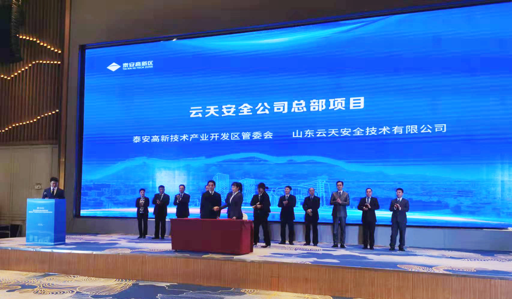泰安市委书记杨洪涛,市委常委、秘书长李灿玉,市委常委、副市长宋洪银,副市长张颖,高新区党工委书记、管委会主任刘斌,鲁信科技股份有限公司副总经理曹年更,浙江一亿中流有限公司董事长刘海峰,澳门太阳城app董事长李峰以及公司高管出席签约仪式。