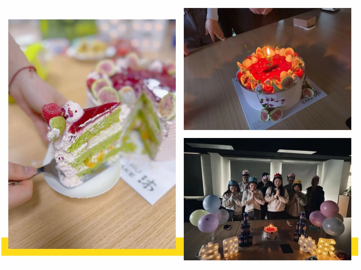 庆生环节将温馨推向高潮:烛光摇曳中,众人齐唱生日歌,寿星们闭目许愿,轻吹蜡烛,分享的不只是蛋糕的甜,更是团队情谊的暖。那一刻,掌声如春溪流淌,为美好瞬间驻足定格。