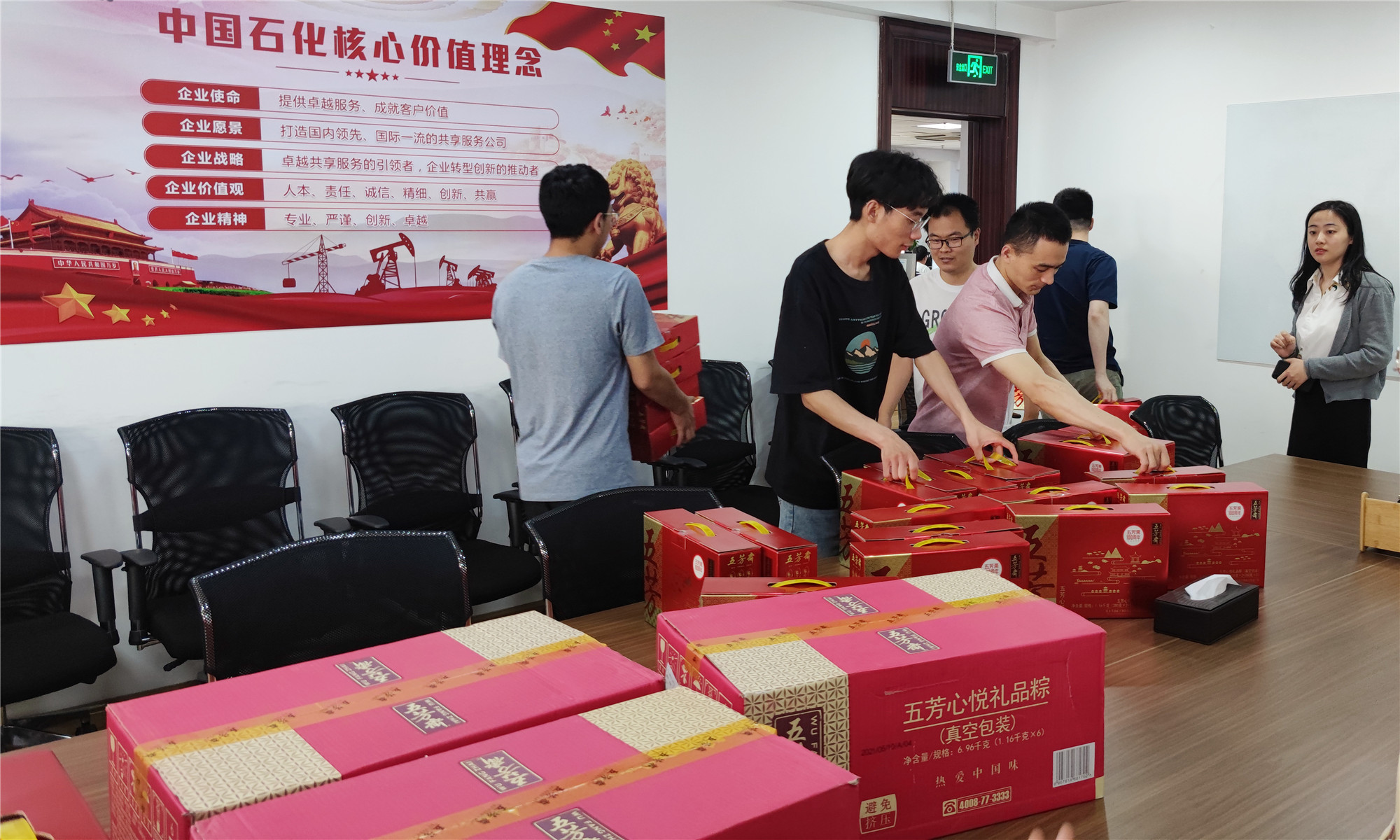 一个个饱含着公司关爱和祝福的粽子礼盒被送到家人的手中,喜悦之情溢出于言表,粽子虽小,情谊却很深。